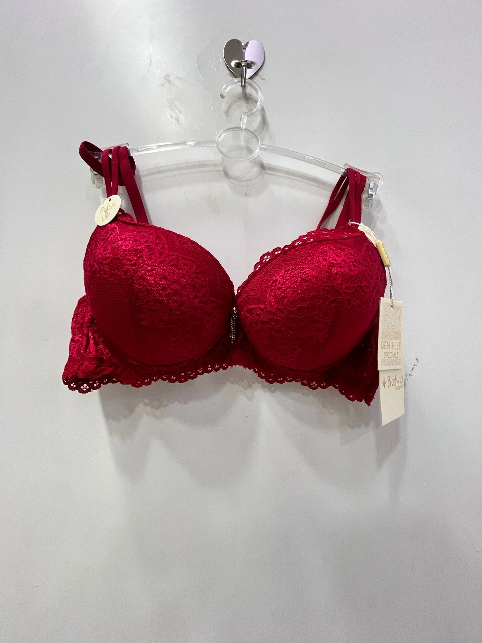 Yüksek kaliteli, narin floral dantel işlemeleriyle donatılan bu model, esnek ve nefes alabilen dokusu sayesinde gün boyu konforlu bir kullanım sunar. Ruj kırmızısının enerjisini taşıyan bu özel tasarım, özellikle ceket içlerinde veya transparan bluzların altında sergilenebilecek bir büstiyer estetiğine sahiptir. Ayarlanabilir askıları ve vücudu kavrayan yan bantları, omuzlarda baskı oluşturmadan vücut hatlarınıza tam uyum sağlar. Belvü kalitesiyle üretilen bu dolgulu sütyen, hem rengiyle hem de dik tutan fonksiyonel yapısıyla gardırobunuzun en iddialı ve şık parçası olacak.