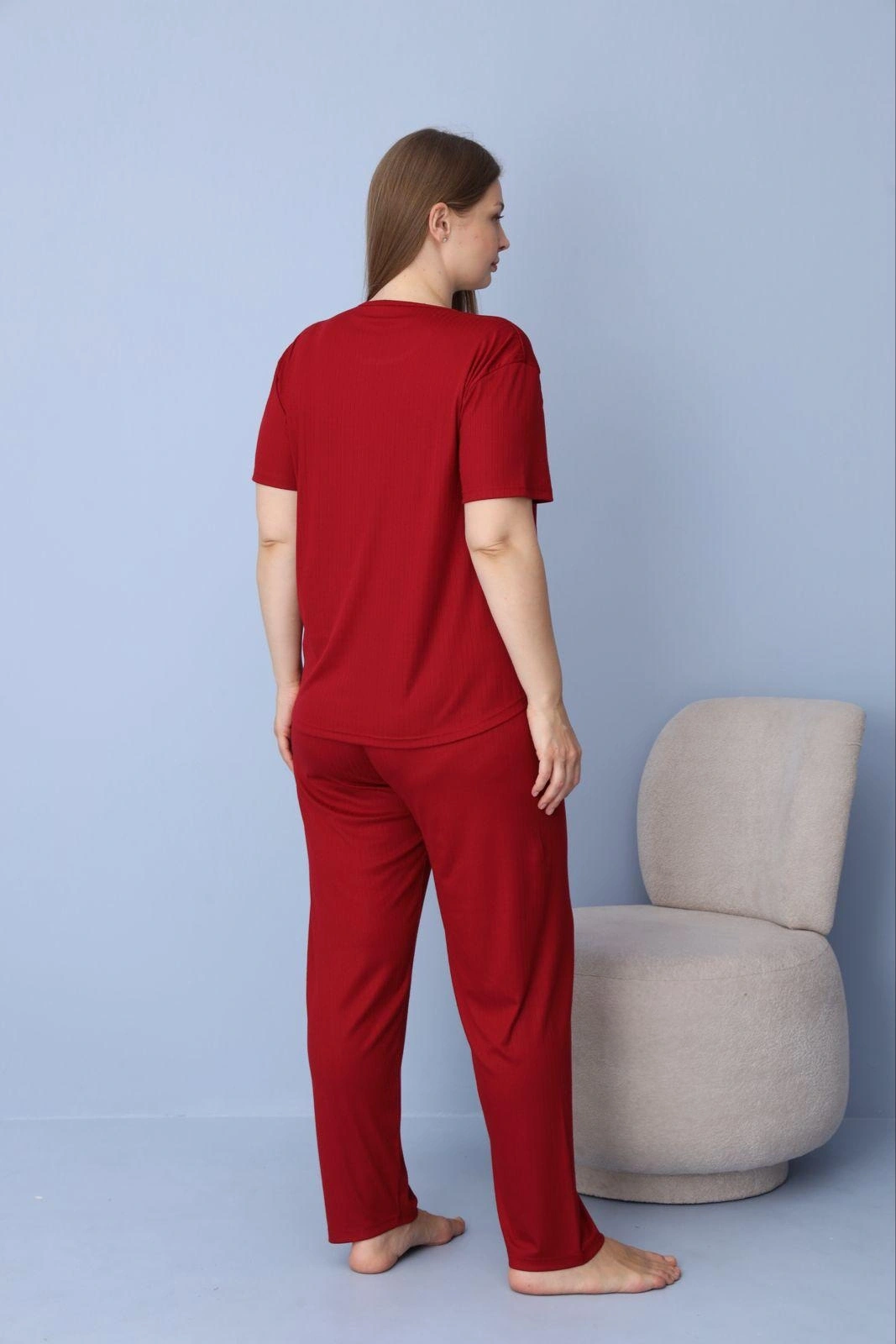 Pijamoni Kadın Büyük Beden Dublin Kumaş Kısa Kollu Bordo Pijama Takımı, bordonun asaletini ve Dublin kumaşın ayrıcalıklı dokusunu büyük beden konforuyla buluşturmak için özel olarak tasarlanmıştır. Dublin kumaşın dökümlü, ipeksi ve nefes alabilen yapısı, teninizde ağırlık yapmayan eşsiz bir ferahlık hissi bırakarak gece boyunca kesintisiz bir uyku kalitesi sunar. Bordo rengin zengin ve derin tonları, ev içinde hem klasik hem de stil sahibi bir duruş sergilemenize yardımcı olurken kendinizi her an şık hissetmenizi sağlar. Ütü gerektirmeyen pratik dokusu sayesinde, yıkama sonrası formunu kaybetmeden doğrudan kullanıma hazır hale gelir ve yoğun günlük temponuzda size büyük bir zaman tasarrufu sağlar. Kısa kollu üst tasarımı ve esnek bel yapısına sahip pantolon altı, vücudunuzu sıkmadan nazikçe kavrayarak hareket özgürlüğünüzü en üst seviyeye taşıyan ergonomik bir kullanım vaat eder. Büyük beden kalıbının sağladığı dökümlü ve rahat siluet, her bedende kusursuz bir uyum sergileyerek konforu estetik bir görünümle birleştirir. Pijamoni’nin titiz işçiliği ve dayanıklı dikiş yapısı, bordo rengin canlılığını ve kumaşın yumuşak tuşesini sık yıkamalarda dahi ilk günkü kalitesinde korumasını garanti altına alır. Hassas ciltler için uygun olan yumuşak dokusu, teninizde ipeksi bir dokunuş bırakarak tahriş ve rahatsızlık riskini tamamen ortadan kaldıran hipoalerjenik bir yapıya sahiptir. Gardırobunuzun en şık ve kurtarıcı parçası olmaya aday bu bordo Dublin takımı hemen sepetinize ekleyerek, ayrıcalıklı pijama konforunu hemen deneyimlemeye başlayın.