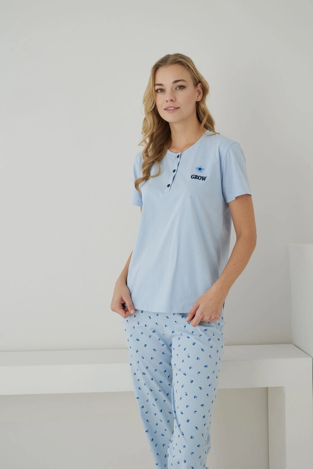 Pijamoni markasının bu mavi pijama takımı, süprem kumaşın doğal pamuklu dokusunu düğmeli yaka detayının modern şıklığıyla birleştirerek ev hayatınıza maksimum konfor getiriyor. Süprem kumaşın nefes alabilen ve teri hapseden yüksek kaliteli yapısı sayesinde en sıcak yaz gecelerinde bile cildinizin taze kalmasını sağlayan bu model, kısa kollu tasarımıyla özgür bir hareket alanı sunuyor. Mavinin huzur veren tonunu yumuşacık bir dokuyla teninize taşıyan takım, düğmeli yaka detayıyla klasik pijama çizgisine estetik ve pratik bir kullanım avantajı katıyor. Esnek bel yapısı ve vücudu sıkmayan rahat kesimi sayesinde uyku kalitenizi artırırken, kaliteli dikiş işçiliği sayesinde defalarca yıkamadan sonra bile formunu ve rengini başarıyla koruyor. Modern ve spor kesimi sayesinde sadece uyku saatlerinde değil, şık bir ev giyim parçası olarak da kullanabileceğiniz bu set, teninizde ağırlık yapmayan hafifliğiyle yokmuş gibi bir his yaratıyor. Pamuklu içeriği ve cildi tahriş etmeyen pürüzsüz yüzeyi, hassas cilt tipleri için dört mevsim boyunca en sağlıklı ve konforlu pijama tercihi olarak öne çıkıyor. Klasik pijama anlayışını gündelik şıklıkla buluşturan bu mavi set, evdeki dinlenme saatlerinizi çok daha keyifli ve estetik bir hale getirmek için özel olarak tasarlandı. Şıklığından ve rahatlığından ödün vermeyen kadınların favorisi olan bu model, zamansız tasarımıyla gardırobunuzun en dayanıklı ve vazgeçilmez parçalarından biri olmayı garantiliyor. Pijamoni kalitesini her ilmeğinde hissedeceğiniz bu süprem kumaş takım, ev stilinize taze bir enerji ve doğal bir dokunuş katmak için en ideal seçeneklerden birini sunuyor.