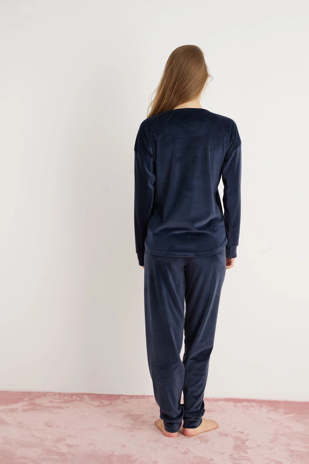 Gecenin huzur veren derinliğini giyin: Pijamoni’den gelen bu Lacivert Kadife Pijama Takımı, evde geçirdiğin anlara asil bir lüks katıyor. Pürüzsüz ve kadifemsi kumaşı, cildinle buluştuğu ilk andan itibaren seni nazikçe sarmalar; tüm günün yorgunluğunu anında unutturan, derin bir rahatlama anı sunar. Yumuşak Kadife dokusu, lacivertin klasik ve zamansız şıklığıyla birleşerek takıma sofistike bir hava katarken, en soğuk kış gecelerinde bile sıcacık kalmanı sağlar. Lacivertin asil tonu ve kadifenin loş ışıktaki o hafif parıltısı, bu takımı sadece bir uyku giysisi olmaktan çıkarıp, ev içinde dahi stilinden ödün vermediğini gösteriyor. Rahat kesimli alt ve üst parçadan oluşan takım, hareket özgürlüğünü kısıtlamadan bedeninle uyum içinde. Pijamoni'nin üstün dikiş işçiliği sayesinde, bu takımın formu ve zengin rengi uzun yıllar boyunca ilk günkü gibi kalacaktır. Kendini şımartmayı, klasik şıklığı ve eşsiz bir konforu hak eden kadınlar için tasarlanmış bu takım, gardırobunun en kıymetli kış parçasıdır.